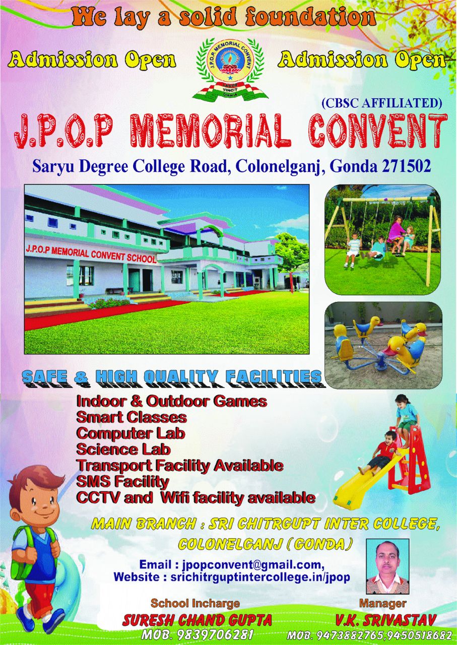 J.P.O.P Memorial Convent is a premier educational institution committed to excellence in academics and overall student development. We focus on creating a strong foundation of knowledge, discipline, and moral values among students.